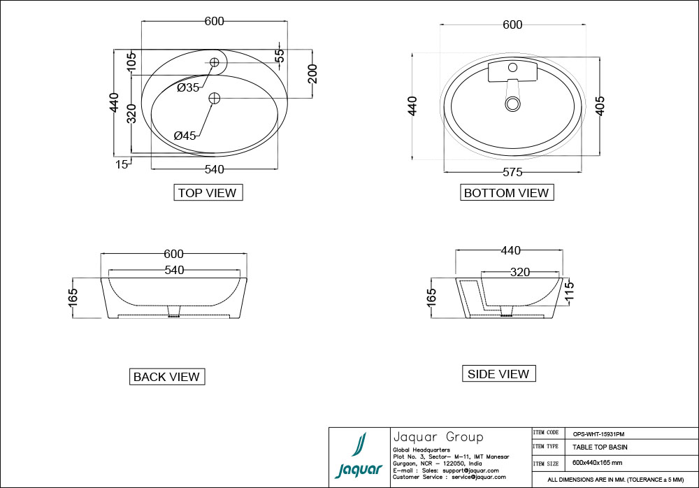 • Jaquar reserves the right at its sole discretion, to change/modify/alter any product specification at any time without notice, where improvement can be effected in design, development and dimensions.